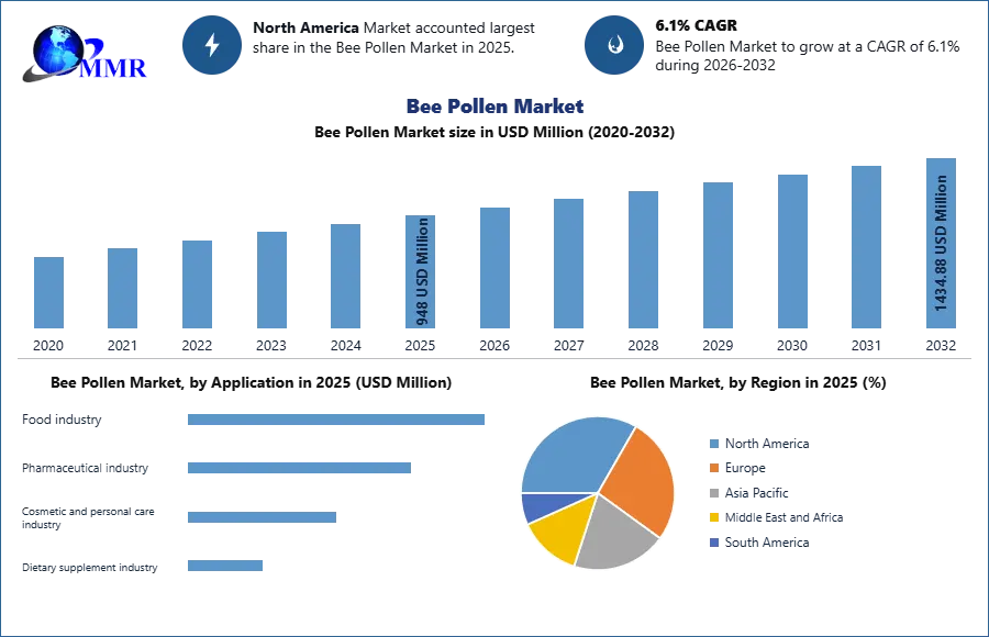 ROCKVILLE , MD, UNITED STATES, April 6, 2026 /EINPresswire.com/ — Global Bee Pollen Market Size and Forecast 2032 indicate robust growth, with the market valued at USD 948 Million in 2025 and projected to reach USD 1,434.88 Million by 2032, expanding at a CAGR of 6.1% during 2026–2032.